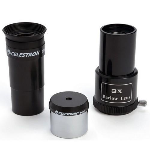 Aksesuarlar arasında 20 mm ve 4 mm mercek, bulma dürbünü ve 3x Barlow lens yer alır.