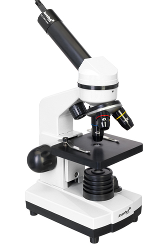 Levenhuk Rainbow D2L 0,3 M Dijital Mikroskop, ayrıca Levenhuk dijital kameralar (ek kameralar ayrıca satın alınır) ile de uyumludur. Göz merceği tüpü içerisine bir göz merceği yerine Levenhuk kameralar monte edilmiştir.