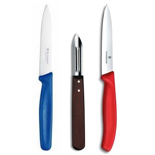 Bu soyma bıçağı seti ile yemekleri profesyoneller gibi hazırlayın.Bu çok yönlü bıçaklar sebze ve meyveleri zahmetsizce doğrama ve şekil vermede mükemmeldir.İster dilimleyin, ister küp küp doğrayın, ister soyun veya daha karmaşık işlerle uğraşın, bu bıçaklar her türlü zorluğa hazırdır.Çok yönlü hazırlık çalışmaları için keskin paslanmaz çelik bıçaklar içerir.Her bıçak, konfor ve kontrol için tasarlanmış hafif ve ergonomik bir sapa sahiptir.İsviçre yapımı ve bulaşık makinesinde yıkanabilir olan bu set, günlük mutfak işleri için hassasiyet ve kolaylık sunar.1 adet Victorinox 5.0209 Gül Ağacı Saplı Çift Taraflı Soyacak1 adet Victorinox 6.7701 10cm Soyma Bıçağı1 adet Victorinox 5.0702 10cm Sivri Uçlu Soyma BıçağıGaranti Bilgisi:Paslanmaya karşı ömür boyu garantiliTeslimat Bilgisi:Ödeme alındıktan sonraki 1-3 iş günü içerisinde kargo edilir.