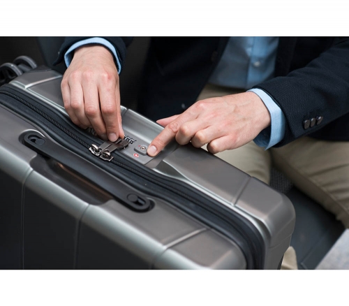 Çift katlı YKK® fermuarlara ve entegre bir Travel Sentry® Onaylı kombinasyon kilidine sahiptir.