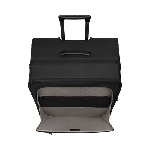 Üst taşıma sapı, tekerlekleri ve VST Victorinox Stabilizing Technology’ye sahip profilli kenar teleskopik çekme sistemi sayesinde çanta kolayca taşınır ve hareket hâlindeyken üstün denge ve kontrol sunar.